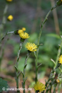 Das Kräuterjahr beginnt bereits Anfang März mit dem Huflattich. Mit seinen sonnenähnlichen gelben Blüten ist der Huflattich nicht nur der erste fröhliche Vorbote des Frühlings sondern hilft uns zugleich den „Winterhusten“ zu heilen. Sein botanischer Name „tussilago“ verrät uns auch gleich diese Wirkung. Tussis kommt aus dem Lateinischen und bedeutet Husten und ago bedeutet „ich vertreibe“, so vertreibt Tussil-ago den Husten. Der volkstümliche Name Huflattich beschreibt die Blätter, die Abdrücke von Pferdehufen ähneln. Ich finde, dass die hängenden, geschlossenen Blüten einem Pferdehuf samt Fessel ähneln. Schon vor 2.500 Jahren wurde der Huflattich als Hustenmittel eingesetzt. Plinius und Dioskures (1. Jahrhundert) beschrieben beide die hervorragende Wirkung des Huflattichs auf die Bronchien, in dem man ihn raucht bzw. den Rauch durch eine trichterähnliche Vorrichtung einatmet.